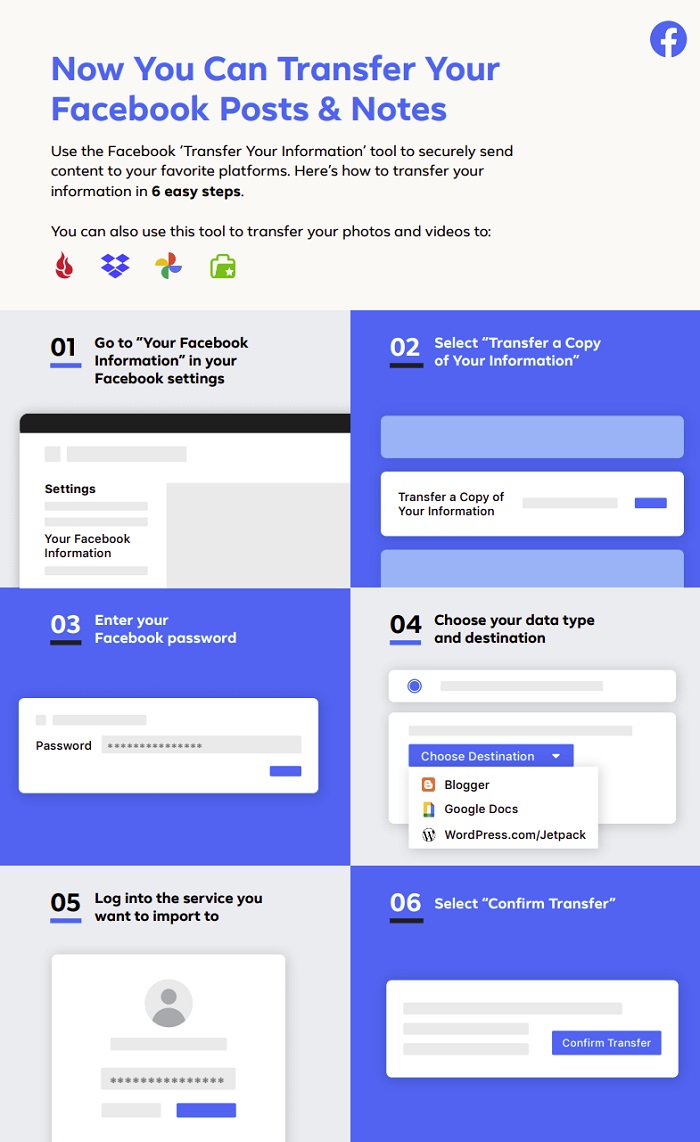 Mostantól eszközt is biztosít a Facebook ahhoz, hogy könnyebben átmenthessük posztjainkat a Google Dokumentumokba, a WordPressbe és a Bloggerbe.